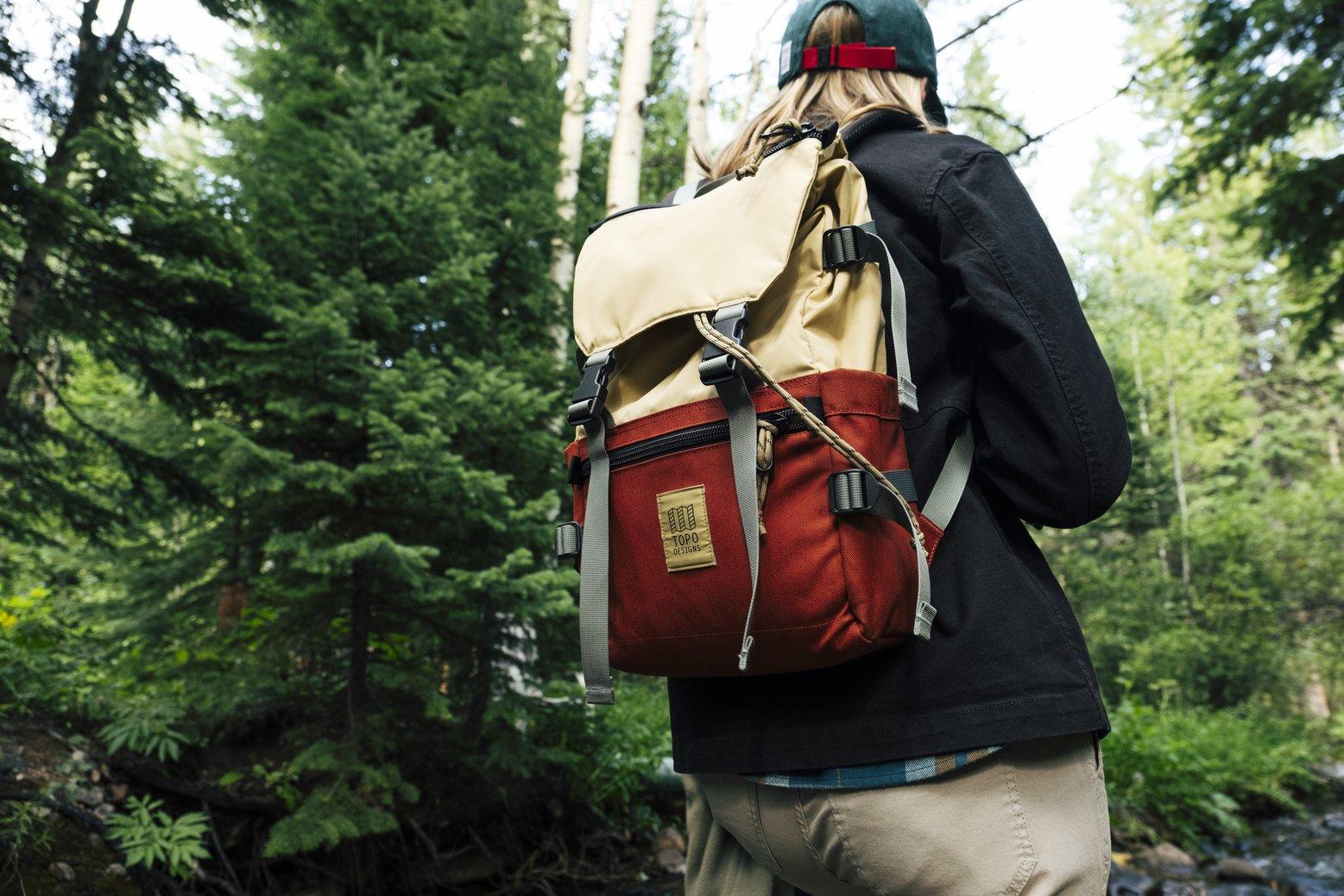 TOPO DESIGNSのブースでは、冒険心をくすぐるバックパック、トート、ヒップパックなど多彩なバッグをラインアップ。